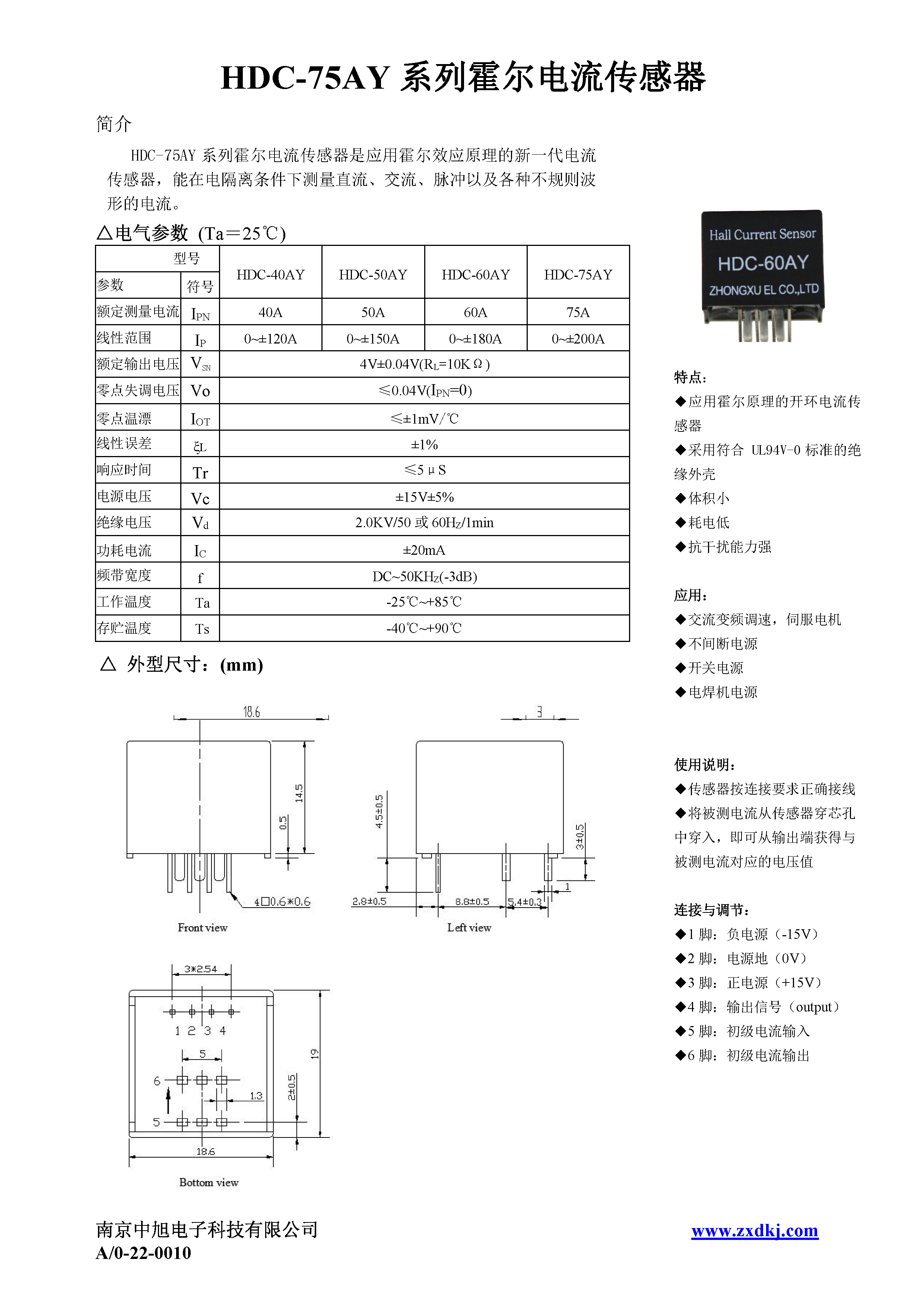 HDC-60AY系列霍爾電流傳感器是應用霍爾效應原理的新一代電流傳感器,能在電隔離條件下測量直流、交流、脈沖以及各種不規則波形的電流。